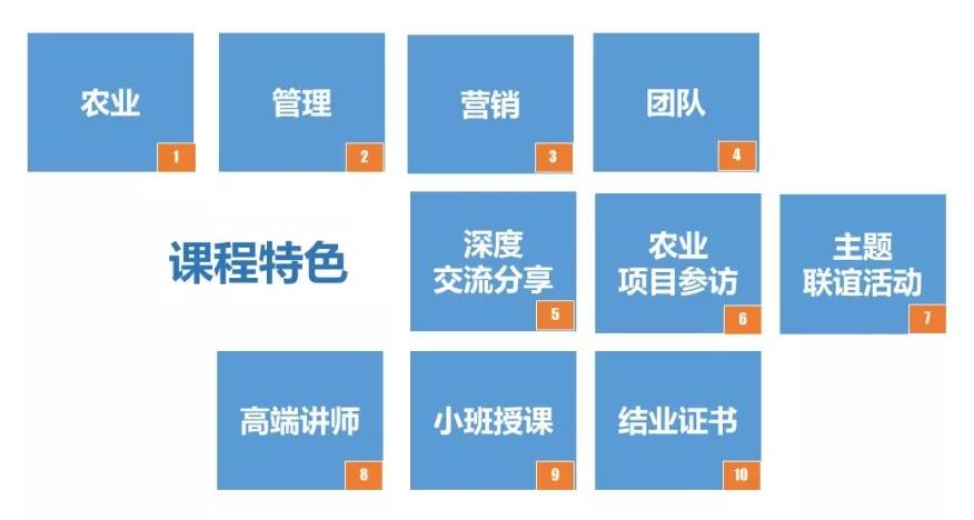 2018年7月首期特訓營面向合作伙(huo)伴正式推出,金正大商學院聯合和君商學院及北大清華總裁班特聘教授科學打造課程體系,即產業(ye)大勢、營銷策(ce)略(lve)、經營管理和游(you)學交(jiao)流四大模塊。讓學員從產業大勢中洞察轉型創新的方向,從營銷策略中汲取優秀實戰經驗,從全面經營管理中領悟管理的本質和法寶,從游學交流中掌握品牌農產品運營模式。