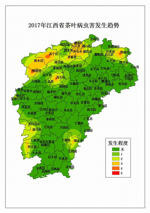 2、氣象條件:去冬今春氣溫偏高,有利于茶樹病蟲害越冬,氣象部門預測3-5月我省雨日偏多,利于茶小綠葉蟬、茶尺蠖、茶炭疽病的發生。