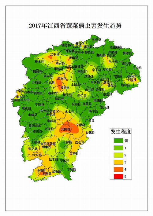 2、氣候因素:據氣象部門預測,4~6月汛期雨量偏多,有利于疫病、枯萎病、青枯病等病害發生;7~9月盛夏高溫日數略偏多,伏秋期平均雨量偏少,有明顯伏秋干旱發生,有利于夜蛾類、紅蜘蛛、瓜絹螟等害蟲發生。