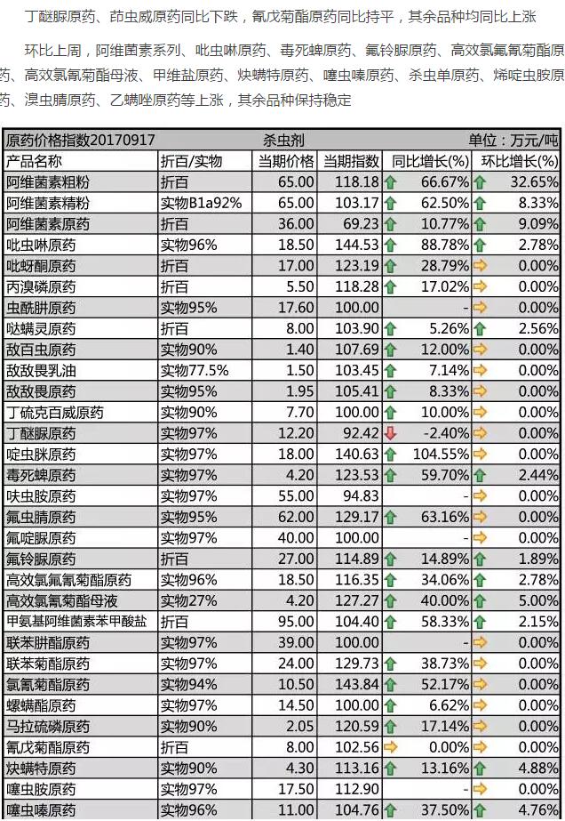 9月中旬國內農藥原藥殺蟲劑價格行情