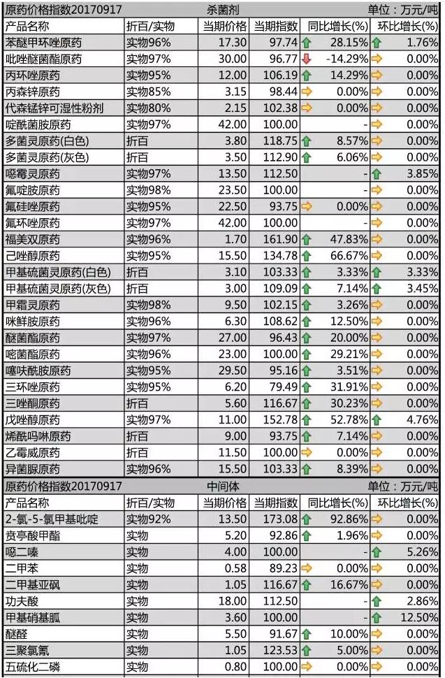 9月中旬國內農藥原藥殺蟲劑價格行情