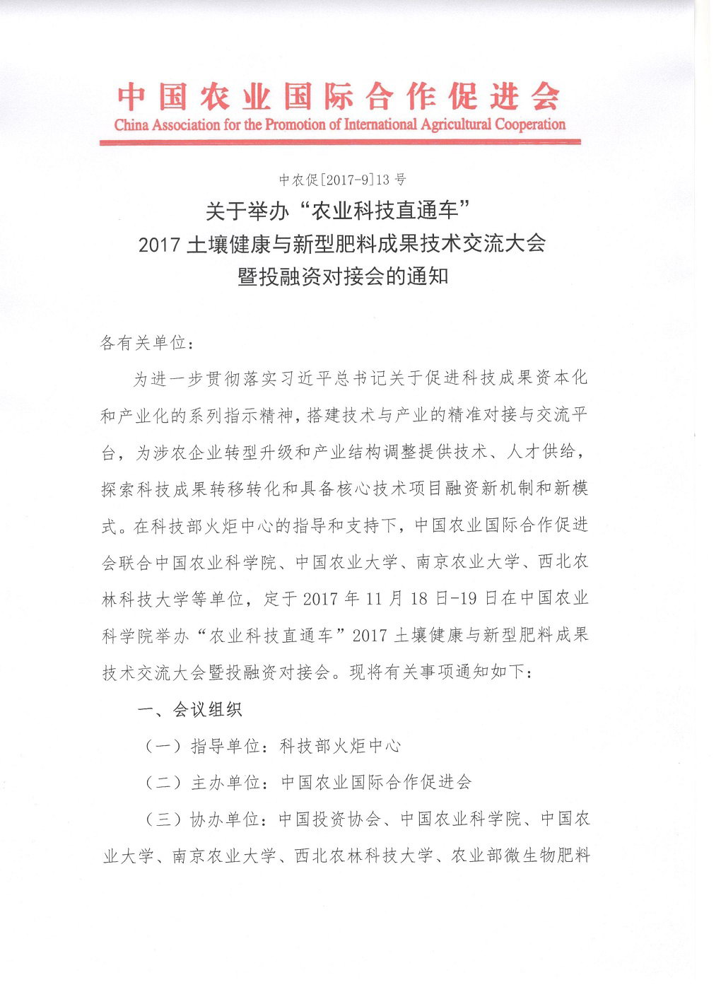 “農業科技直通車”2017土壤健康與新型肥料成果技術交流大會暨投融資對接會