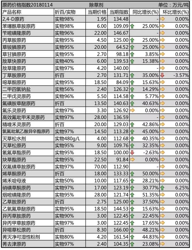 1月中旬農藥原藥除草劑價格行情