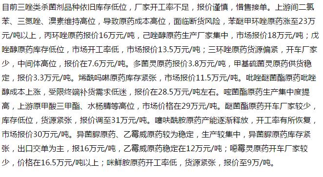 3月上旬國內農藥原藥殺蟲劑價格行情