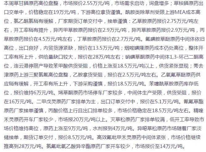 3月上旬國內農藥原藥殺蟲劑價格行情