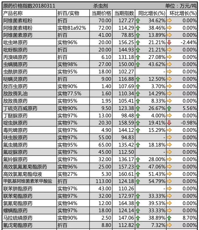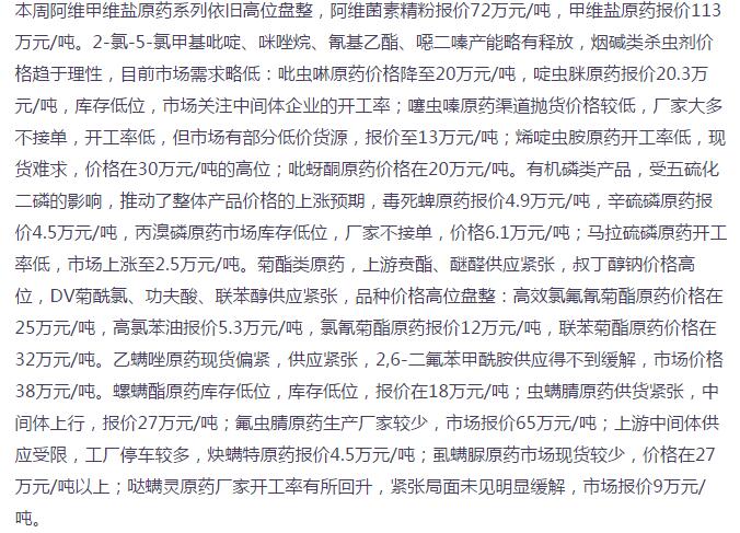 3月上旬國內農藥原藥殺蟲劑價格行情