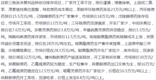 3月中旬國內農藥原藥殺蟲劑價格行情