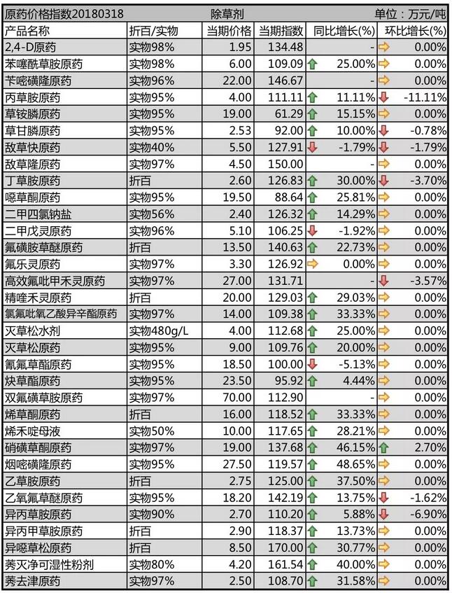 3月上旬國內農藥原藥除草劑價格行情