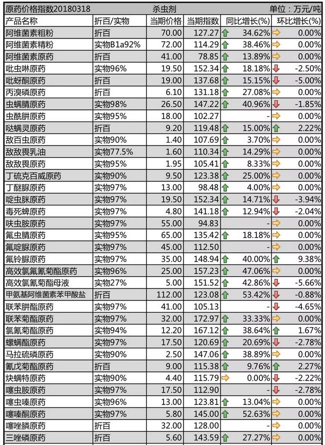 3月上旬國內農藥原藥殺蟲劑價格行情
