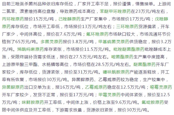 3月第三周國內農藥原藥殺蟲劑價格行情