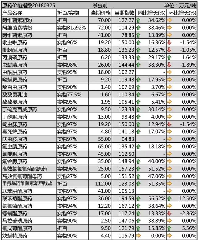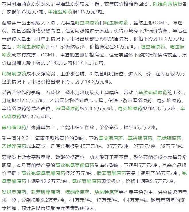 3月份國內農藥原藥殺蟲劑價格行情