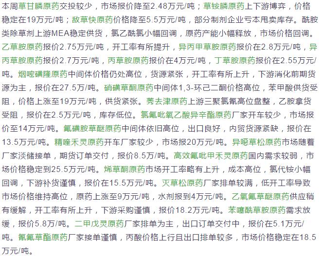 3月第三周國內農藥原藥殺蟲劑價格行情