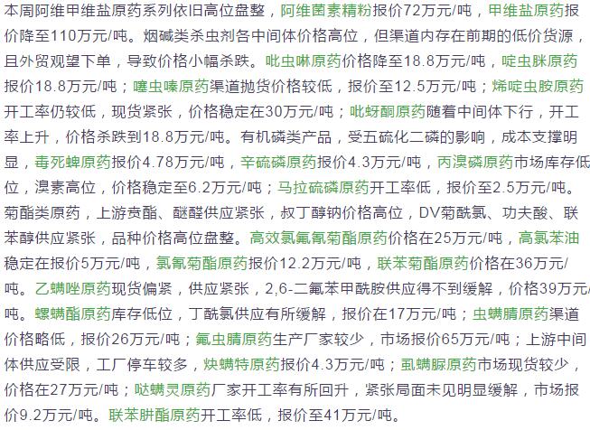 3月第三周國內農藥原藥殺蟲劑價格行情