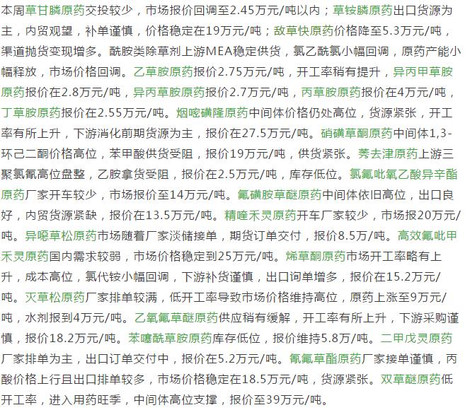 3月第三周國內農藥原藥殺蟲劑價格行情