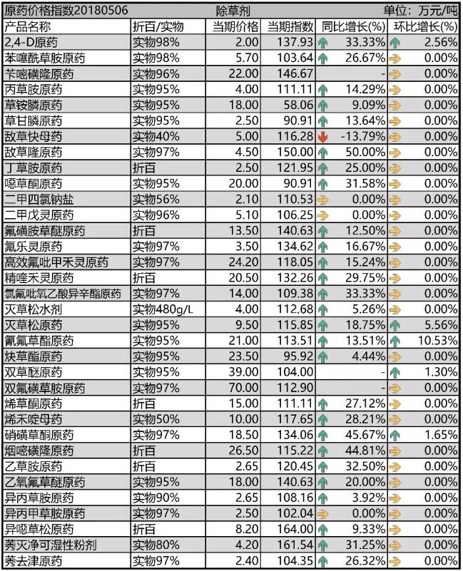 5月上旬國內農藥原藥除草劑市場行情