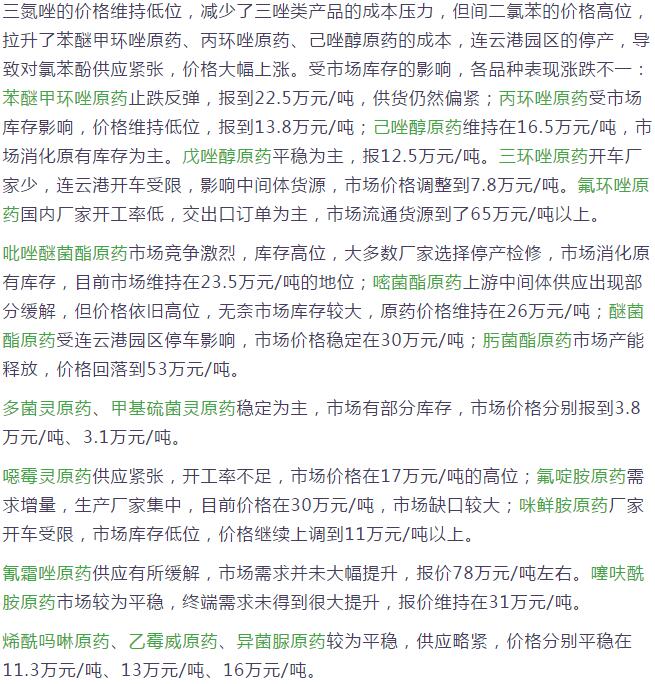 5月中旬國內農藥原藥殺蟲劑價格行情
