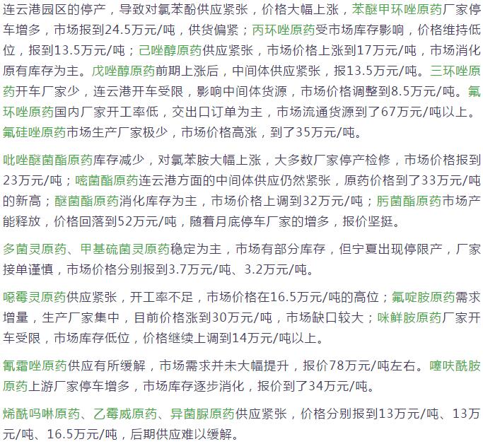 多款原藥貨源緊張價格提升