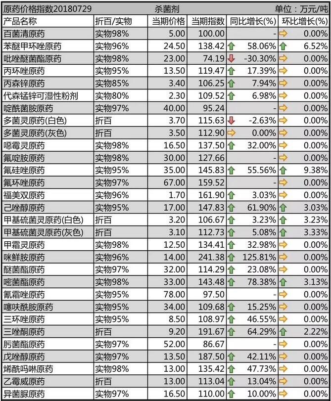 7月初國內農藥原藥殺菌劑行情走勢