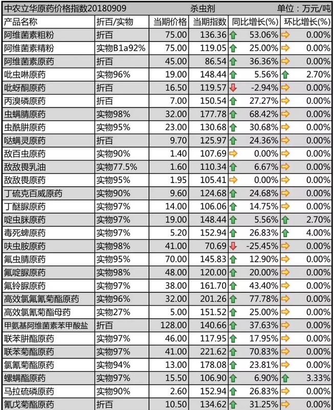9月初國內農藥原藥殺蟲劑市場價格走勢
