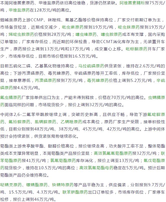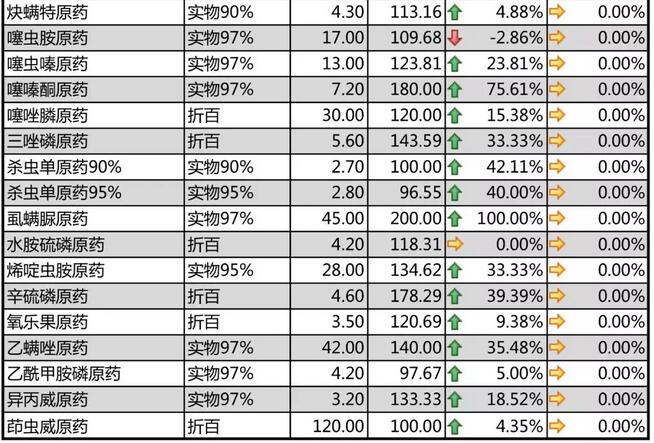 本周國內農藥原藥殺蟲劑價格走勢