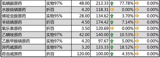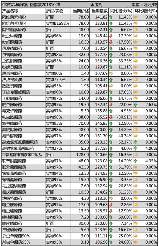 10月下旬國內農藥原藥殺蟲劑價格走勢