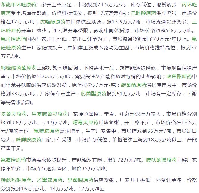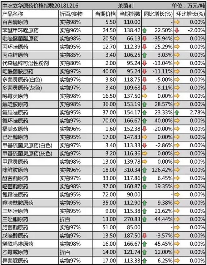 12月中旬國內農藥原藥殺菌劑價格走勢
