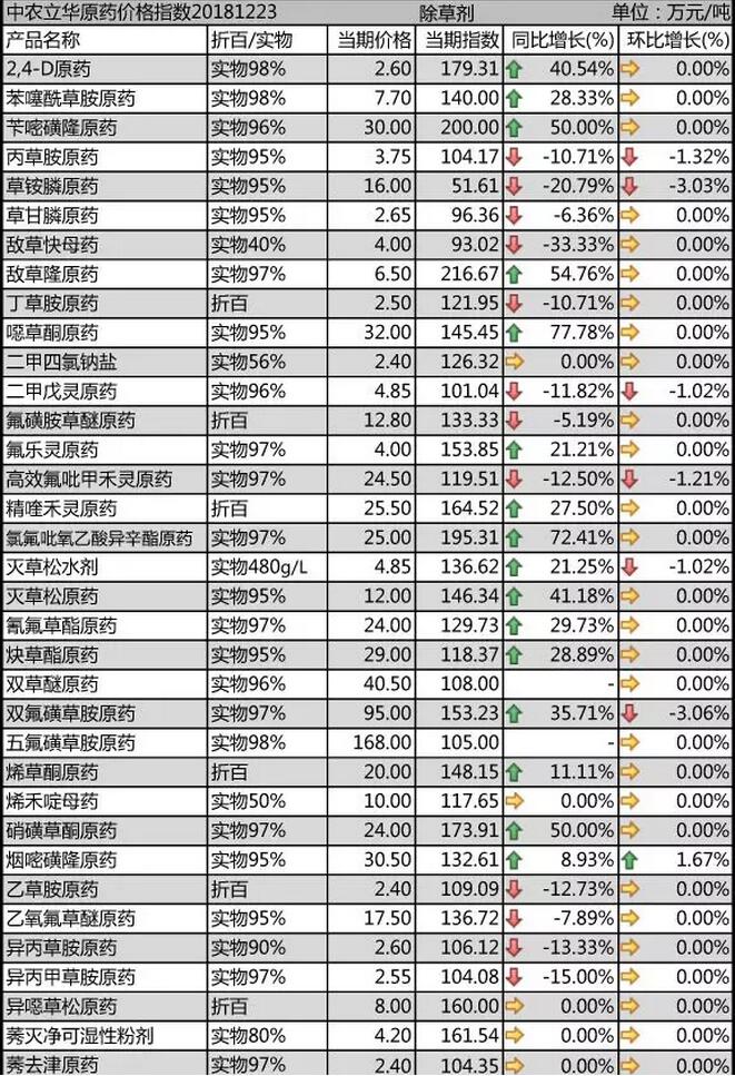 12月中旬國內農藥原藥除草劑價格走勢