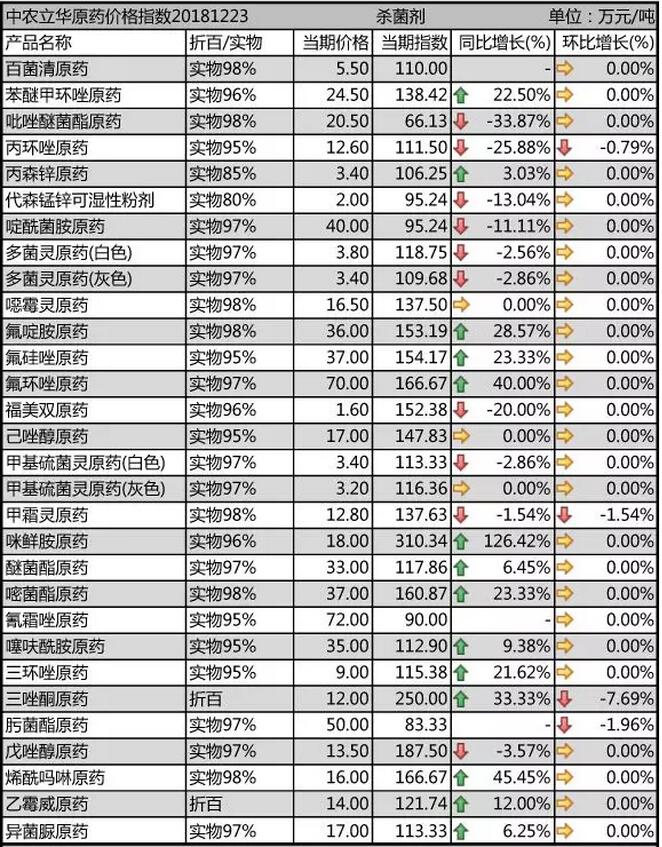 12月中旬國內農藥原藥殺菌劑價格走勢