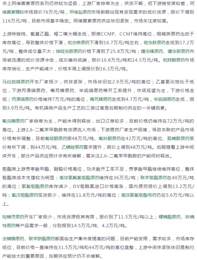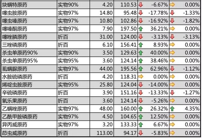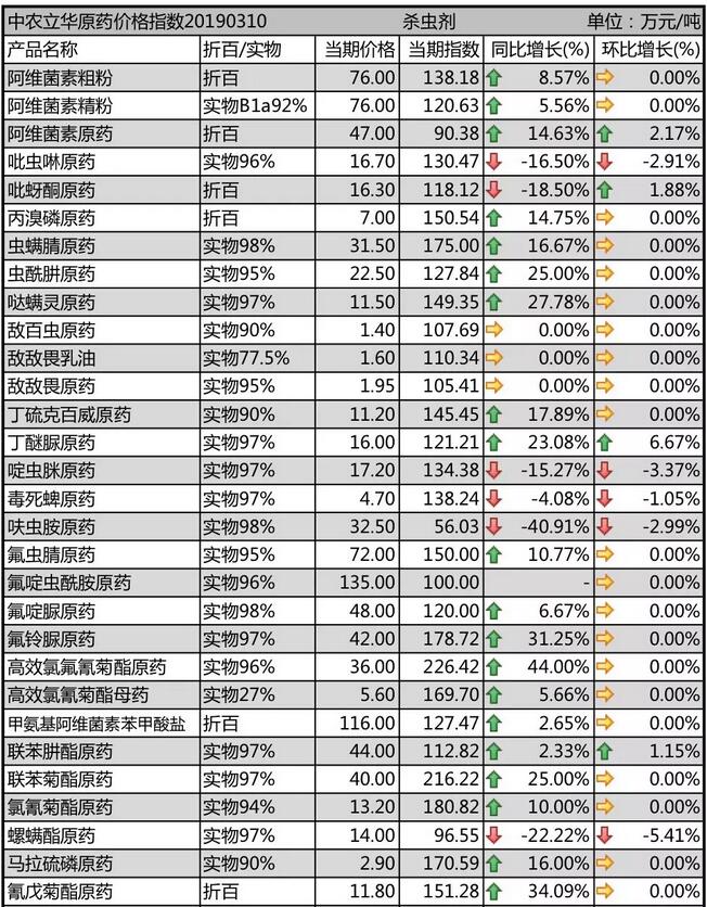 19年3月中旬國內農藥原藥殺蟲劑價格走勢