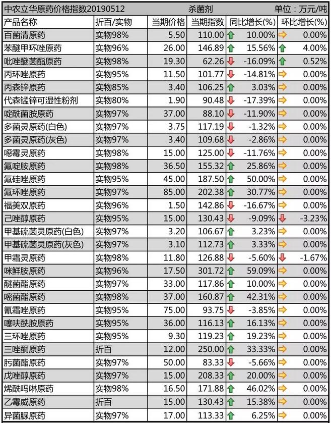 2019年5月初國內農藥原藥殺菌劑價格走勢