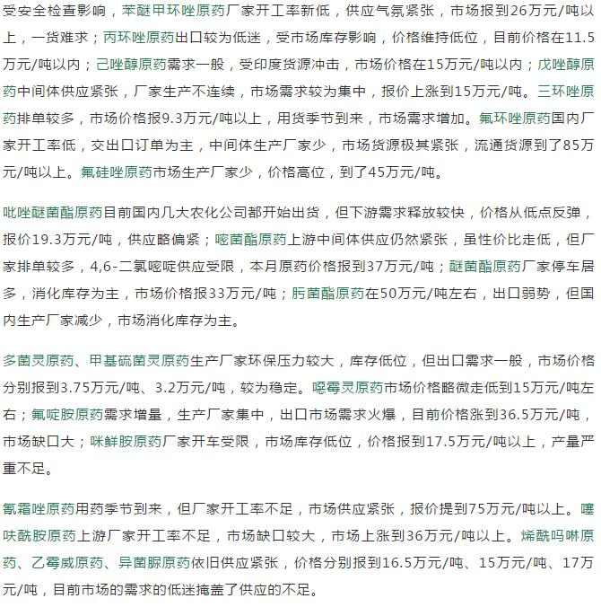2019年5月中旬國內農藥原藥殺菌劑價格走勢
