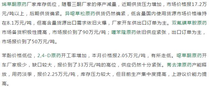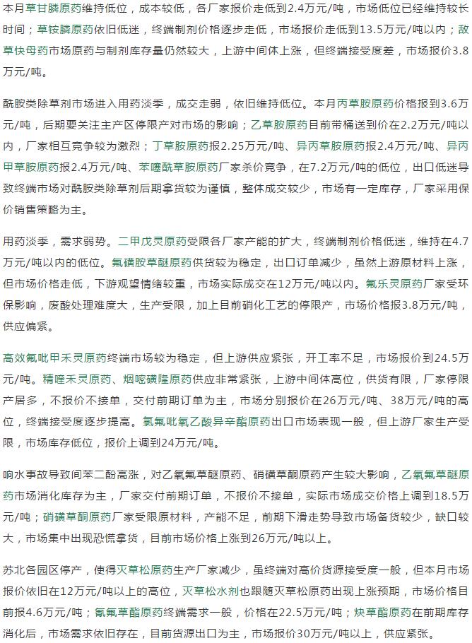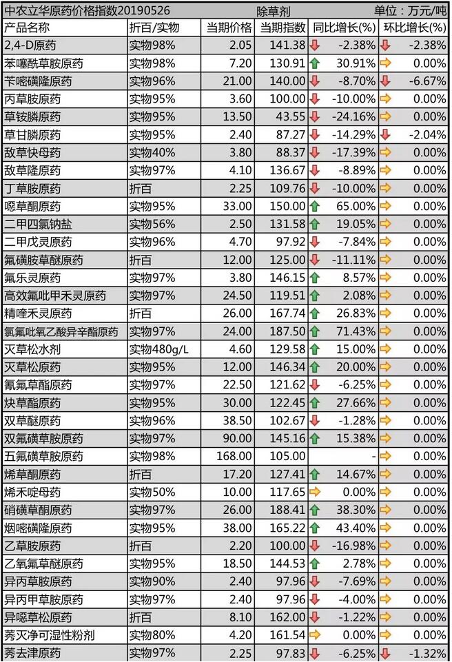 2019年5月中旬國內農藥原藥除草劑價格走勢