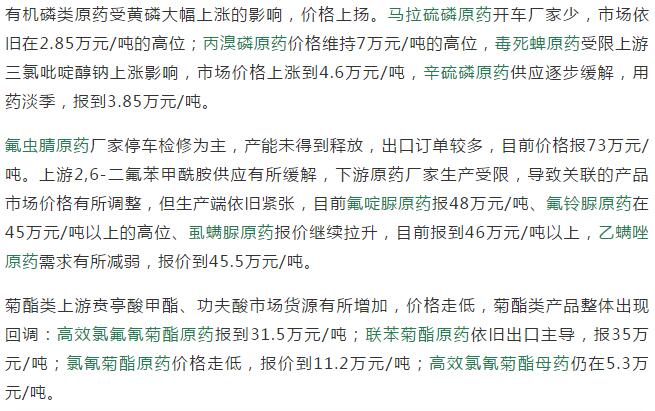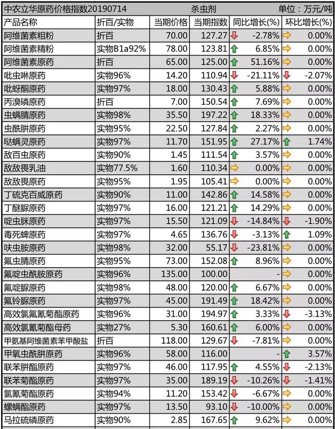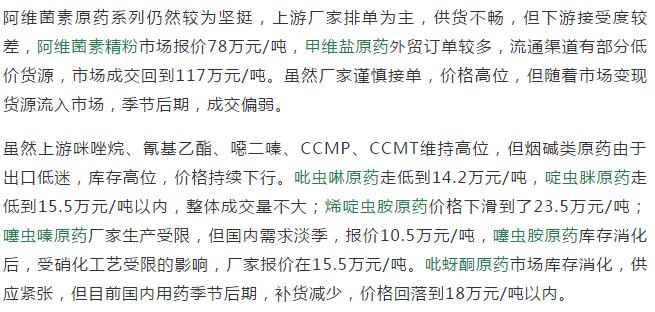 19年7月中旬國內農藥市場殺蟲劑價格走勢