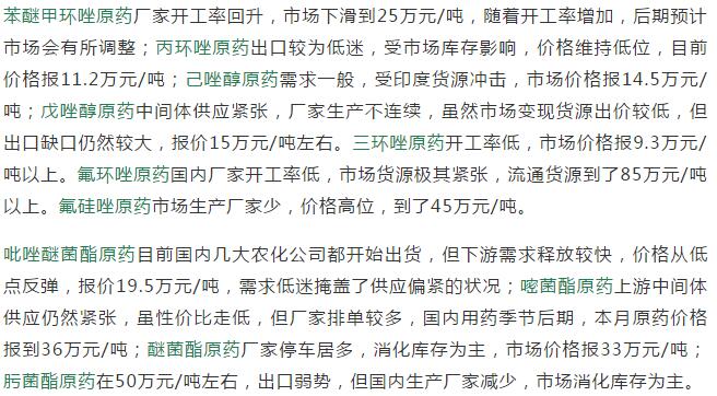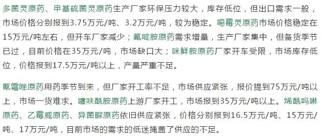19年6月中旬國內農藥原藥殺菌劑價格走勢