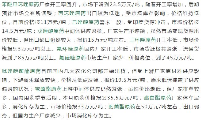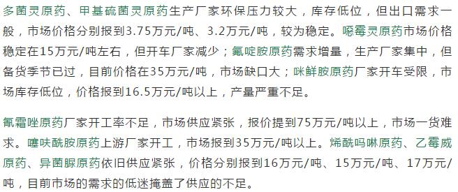 多款原藥貨源緊張價格提升