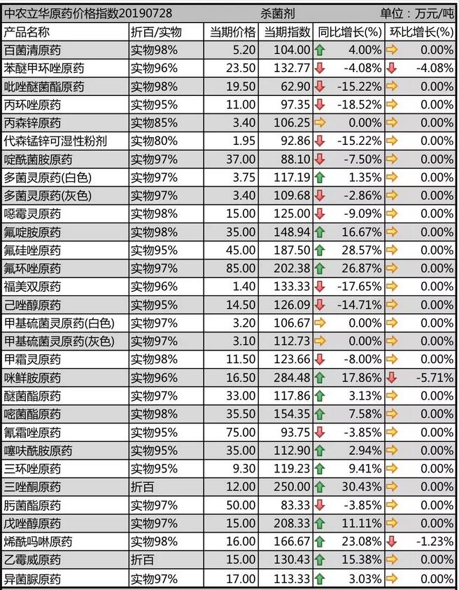 19年7月中旬國內農藥市場殺菌劑價格走勢