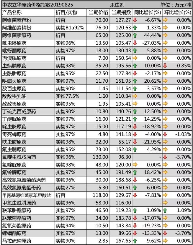 氟蟲腈原藥(yao)廠家停車檢(jian)修(xiu)為主,價格(ge)報價在73萬元(yuan)/噸(dun)。市(shi)場淡(dan)季,目前(qian)氟啶(ding)脲原藥(yao)報48萬元(yuan)/噸(dun)、氟鈴脲原藥(yao)報45萬元(yuan)/噸(dun)、虱螨脲原藥(yao)報45.5萬元(yuan)/噸(dun)、乙螨唑原藥(yao)報45.5萬元(yuan)/噸(dun),用藥(yao)尾(wei)聲需求有所減弱。
