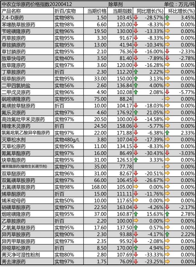 滅草松(song)原(yuan)(yuan)藥本(ben)月上(shang)(shang)(shang)游原(yuan)(yuan)材料上(shang)(shang)(shang)漲,終端價(jia)格(ge)有所上(shang)(shang)(shang)調,市場(chang)報(bao)價(jia)11萬(wan)元(yuan)/噸(dun),期貨訂單(dan)價(jia)格(ge)略低,滅草松(song)水劑(ji)報(bao)3.7萬(wan)元(yuan)/噸(dun),供應偏緊;氰氟草酯原(yuan)(yuan)藥訂單(dan)開始增多,廠家(jia)有意壓低市場(chang)價(jia)格(ge),目(mu)前(qian)報(bao)16萬(wan)元(yuan)/噸(dun);炔(gui)草酯原(yuan)(yuan)藥上(shang)(shang)(shang)游原(yuan)(yuan)材料供應有所緩(huan)解,價(jia)格(ge)有所回落,報(bao)價(jia)到31萬(wan)元(yuan)/噸(dun),但(dan)仍(reng)處于高(gao)位(wei)。