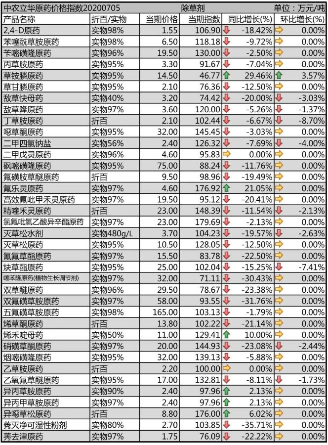 草甘膦原藥內貿需求逐步釋放,終端制劑消化速度加快,廠家庫存低位,外貿需求排單超預期,部分廠家逐步檢修,貨源吃緊,行情小幅上揚,報價2.1萬元/噸;草銨膦原藥目前供應依舊緊張,廠家上調報價意愿強烈,終端市場成本傳導博弈(yi),需求減緩,報(bao)價14.5萬元/噸;敵(di)草(cao)快(kuai)母藥庫存消化緩慢,出口訂單(dan)持續觀望,市場報(bao)價維持3.2萬元/噸,成交清淡。
