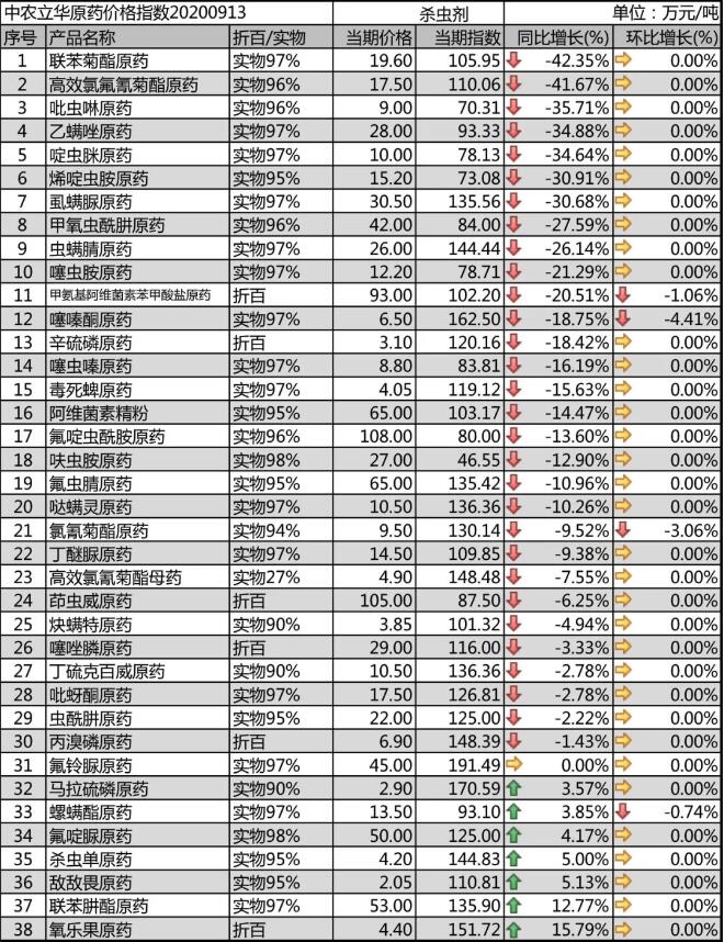吡蚜酮原(yuan)藥新增產(chan)能釋(shi)放,價(jia)格大(da)幅走低,本月市(shi)場價(jia)格回落到17.5萬(wan)元/噸,后期各(ge)價(jia)格高位品種產(chan)能的(de)(de)釋(shi)放,必然帶來價(jia)格的(de)(de)大(da)幅回調。氟(fu)啶蟲(chong)酰胺(an)原(yuan)藥終端市(shi)場爆發增長,是(shi)目前防治蚜蟲(chong)方面的(de)(de)特效藥,目前市(shi)場淡季,市(shi)場價(jia)格報108萬(wan)元/噸。