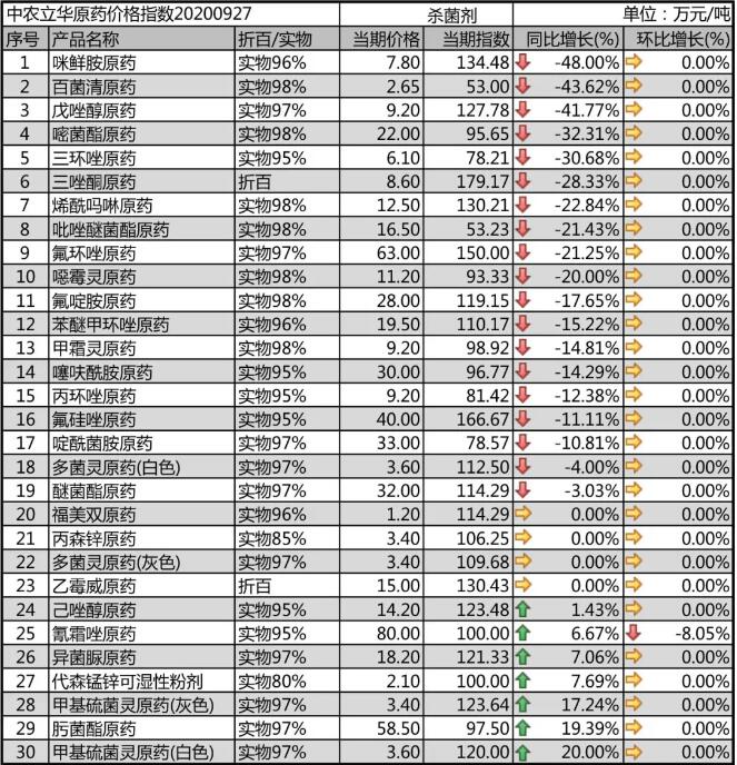 多(duo)菌(jun)靈(ling)(ling)原(yuan)藥(yao)、甲(jia)基硫菌(jun)靈(ling)(ling)原(yuan)藥(yao)生(sheng)產廠家(jia)環保壓力(li)較大,開(kai)工率一(yi)般,市(shi)場(chang)(chang)報(bao)價(jia)(jia)在3.5-3.6萬元(yuan)/噸,甲(jia)托(tuo)供應緊張;噁霉靈(ling)(ling)原(yuan)藥(yao)市(shi)場(chang)(chang)價(jia)(jia)格報(bao)至(zhi)11.2萬元(yuan)/噸,需(xu)求(qiu)(qiu)弱勢;氟啶胺原(yuan)藥(yao)生(sheng)產廠家(jia)集中(zhong),市(shi)場(chang)(chang)觀望情緒較重(zhong),目前價(jia)(jia)格下滑至(zhi)28萬元(yuan)/噸;咪鮮(xian)胺原(yuan)藥(yao)開(kai)工率提(ti)升,但市(shi)場(chang)(chang)需(xu)求(qiu)(qiu)進入淡季(ji),價(jia)(jia)格下行,報(bao)到7.8萬元(yuan)/噸。