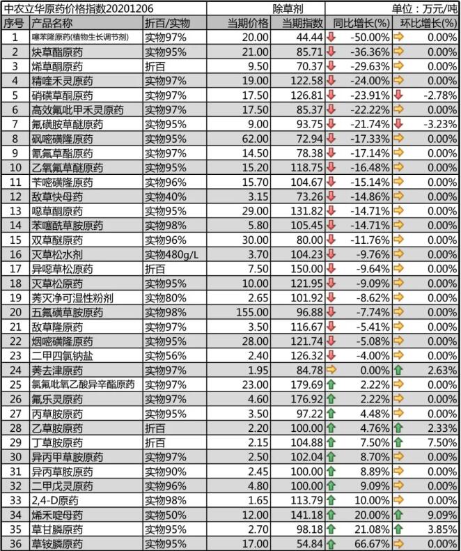 乙(yi)氧(yang)氟草(cao)(cao)醚(mi)原(yuan)(yuan)藥(yao)庫(ku)存減少,出口為主(zhu),內貿需求(qiu)逐(zhu)步啟動,上(shang)(shang)游(you)原(yuan)(yuan)材料上(shang)(shang)漲,市(shi)場(chang)成交價(jia)格穩定(ding)在15.2萬元/噸(dun)左右;硝磺草(cao)(cao)酮原(yuan)(yuan)藥(yao)隨(sui)著上(shang)(shang)游(you)供應的(de)增加(jia),原(yuan)(yuan)材料的(de)走低,市(shi)場(chang)競爭(zheng)加(jia)劇,市(shi)場(chang)報(bao)價(jia)17.5萬元/噸(dun)以內,各廠家保價(jia)發貨占(zhan)庫(ku)存為主(zhu)。