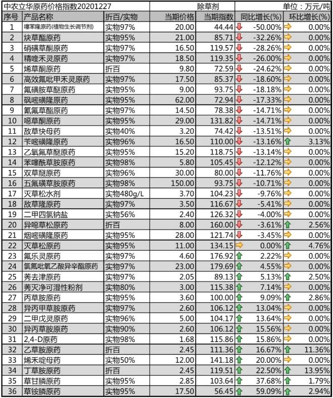 本月草甘膦原藥庫存低位,黃磷、甘氨酸處于高位,廠家接連上調報價,目前報價2.85萬元/噸,期單已經排到2月份,預計后期仍會維持高位;草銨膦原藥目前供應依舊緊張,無新增產能入市,廠家少量接單,報價到17.5萬元/噸;敵草快母藥出口訂單為主,廠家交貨緊張,市場報到3.2萬(wan)元/噸以上。