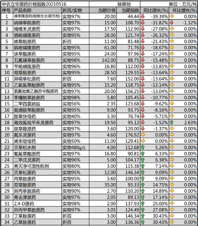 烯(xi)草酮原(yuan)藥受(shou)基礎原(yuan)材料上行的影(ying)(ying)響,成本上行,但(dan)用藥季節后(hou)期,市(shi)場價(jia)(jia)格穩定在11萬元(yuan)(yuan)/噸;異噁草松原(yuan)藥廠(chang)家受(shou)限前期開(kai)工率不足,前期訂單仍未(wei)交付完畢(bi),但(dan)無(wu)奈市(shi)場需求慘淡(dan),國內市(shi)場低(di)含(han)量(liang)貨源價(jia)(jia)格報(bao)到(dao)7.6萬元(yuan)(yuan)/噸;噻(sai)苯隆原(yuan)藥市(shi)場報(bao)價(jia)(jia)20萬元(yuan)(yuan)/噸,受(shou)開(kai)工率提升影(ying)(ying)響,價(jia)(jia)格有所下滑;砜嘧磺(huang)隆原(yuan)藥市(shi)場報(bao)價(jia)(jia)61萬元(yuan)(yuan)/噸,開(kai)車廠(chang)家少,消化庫(ku)存(cun)為(wei)主(zhu),庫(ku)存(cun)逐步降低(di)。