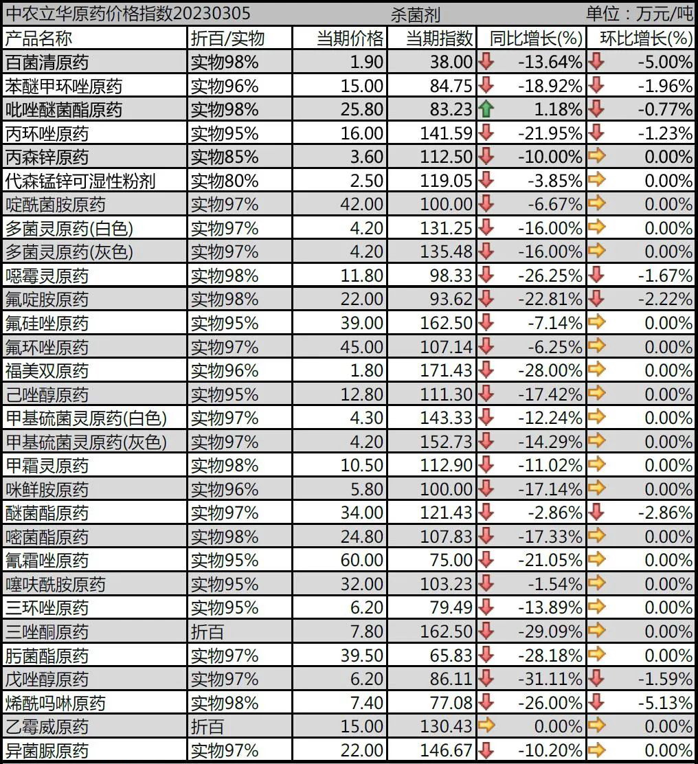 多菌靈原藥市場貨源緊張,報價在4.2萬元/噸;甲基硫菌靈原藥市場貨源緊張,廠家排單為主,價格報到4.3萬元/噸;福美雙原藥價格1.8萬元/噸;甲霜靈原藥價格報到10.5萬元/噸,噁霉靈原藥市場價格報至11.8萬元/噸;氟啶胺原藥目前價格報22萬元/噸;咪鮮胺原藥廠家開工率提升,終端客戶消化庫存為主,市場報價下探至5.8萬元/噸。