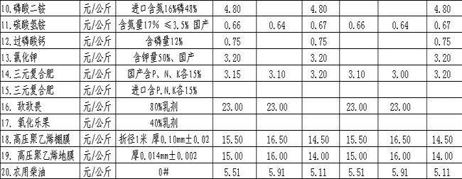 4月上旬河北農資價格行情表