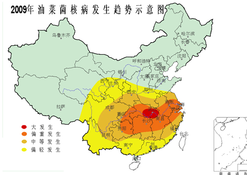 據國家氣候中心預報,3月份,全國大部地區氣溫較常年同期偏高,四川東部、重慶、貴州中東部、湖北西南部、湖南西部降水偏多;且3月中下旬至4月上旬,長江中下游地區多陰雨天氣,天氣條件有利于西南地區東部、江漢平原和長江中下游地區菌核病的發生。