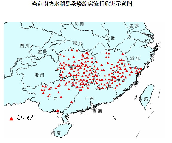 截(jie)至8月10日,華(hua)南(nan)和(he)江(jiang)南(nan)中(zhong)稻(dao)(dao)(dao)區(qu)累(lei)計發(fa)生(sheng)(sheng)(sheng)(sheng)386萬畝,202個(ge)(ge)(ge)縣(xian)(xian)見(jian)(jian)(jian)(jian)病(bing)(bing)(bing)(bing)(bing),比7月30日增加1.8倍(bei)和(he)72.6%,部(bu)(bu)分重(zhong)(zhong)發(fa)田塊病(bing)(bing)(bing)(bing)(bing)株(zhu)(zhu)率(lv)(lv)(lv)(lv)超(chao)過50%。其(qi)中(zhong),廣東北部(bu)(bu)中(zhong)稻(dao)(dao)(dao)區(qu)發(fa)生(sheng)(sheng)(sheng)(sheng)8萬畝,占全省(sheng)(sheng)中(zhong)稻(dao)(dao)(dao)種植面積約(yue)20%,見(jian)(jian)(jian)(jian)病(bing)(bing)(bing)(bing)(bing)范圍集中(zhong)在(zai)韶關和(he)清遠地區(qu)的(de)5個(ge)(ge)(ge)縣(xian)(xian)(區(qu)),病(bing)(bing)(bing)(bing)(bing)株(zhu)(zhu)率(lv)(lv)(lv)(lv)一(yi)般(ban)(ban)10%-20%,局(ju)部(bu)(bu)重(zhong)(zhong)發(fa)田塊病(bing)(bing)(bing)(bing)(bing)株(zhu)(zhu)率(lv)(lv)(lv)(lv)60%以(yi)上。廣西中(zhong)稻(dao)(dao)(dao)發(fa)生(sheng)(sheng)(sheng)(sheng)12萬畝,有7個(ge)(ge)(ge)市(shi)(shi)22個(ge)(ge)(ge)縣(xian)(xian)見(jian)(jian)(jian)(jian)病(bing)(bing)(bing)(bing)(bing),重(zhong)(zhong)發(fa)區(qu)域集中(zhong)在(zai)北部(bu)(bu)稻(dao)(dao)(dao)區(qu),病(bing)(bing)(bing)(bing)(bing)叢(cong)(cong)(cong)(cong)率(lv)(lv)(lv)(lv)一(yi)般(ban)(ban)5%-10%,桂林、柳州(zhou)、河池局(ju)部(bu)(bu)重(zhong)(zhong)發(fa)田塊超(chao)過80%。福(fu)建中(zhong)稻(dao)(dao)(dao)發(fa)生(sheng)(sheng)(sheng)(sheng)63萬畝,有9個(ge)(ge)(ge)市(shi)(shi)43個(ge)(ge)(ge)縣(xian)(xian)見(jian)(jian)(jian)(jian)病(bing)(bing)(bing)(bing)(bing),病(bing)(bing)(bing)(bing)(bing)叢(cong)(cong)(cong)(cong)率(lv)(lv)(lv)(lv)一(yi)般(ban)(ban)5%-15%,西北部(bu)(bu)的(de)南(nan)平、三(san)明、寧德(de)、龍(long)巖等重(zhong)(zhong)發(fa)田塊超(chao)過80%。湖南(nan)中(zhong)稻(dao)(dao)(dao)發(fa)生(sheng)(sheng)(sheng)(sheng)243萬畝,見(jian)(jian)(jian)(jian)病(bing)(bing)(bing)(bing)(bing)范圍遍(bian)及全省(sheng)(sheng),除張家界外有12個(ge)(ge)(ge)市(shi)(shi)(州(zhou))86個(ge)(ge)(ge)縣(xian)(xian)見(jian)(jian)(jian)(jian)病(bing)(bing)(bing)(bing)(bing),隆回、邵陽(yang)、麻陽(yang)、會同、瀏(liu)陽(yang)市(shi)(shi)的(de)發(fa)病(bing)(bing)(bing)(bing)(bing)面積均在(zai)10萬畝以(yi)上,全省(sheng)(sheng)病(bing)(bing)(bing)(bing)(bing)叢(cong)(cong)(cong)(cong)率(lv)(lv)(lv)(lv)一(yi)般(ban)(ban)5%-10%,病(bing)(bing)(bing)(bing)(bing)叢(cong)(cong)(cong)(cong)率(lv)(lv)(lv)(lv)超(chao)過20%的(de)發(fa)病(bing)(bing)(bing)(bing)(bing)田塊占近5%。江(jiang)西中(zhong)稻(dao)(dao)(dao)發(fa)病(bing)(bing)(bing)(bing)(bing)面積近60萬畝,發(fa)生(sheng)(sheng)(sheng)(sheng)區(qu)域遍(bian)布(bu)全省(sheng)(sheng)13個(ge)(ge)(ge)市(shi)(shi),46個(ge)(ge)(ge)縣(xian)(xian)(區(qu))出(chu)現典型矮化稻(dao)(dao)(dao)株(zhu)(zhu),病(bing)(bing)(bing)(bing)(bing)叢(cong)(cong)(cong)(cong)率(lv)(lv)(lv)(lv)一(yi)般(ban)(ban)1%-7%,贛州(zhou)、吉安、萍鄉等重(zhong)(zhong)發(fa)地最高(gao)病(bing)(bing)(bing)(bing)(bing)叢(cong)(cong)(cong)(cong)率(lv)(lv)(lv)(lv)66%。另(ling)外,浙江(jiang)局(ju)部(bu)(bu)稻(dao)(dao)(dao)區(qu)零星(xing)查見(jian)(jian)(jian)(jian)發(fa)病(bing)(bing)(bing)(bing)(bing)稻(dao)(dao)(dao)株(zhu)(zhu)。