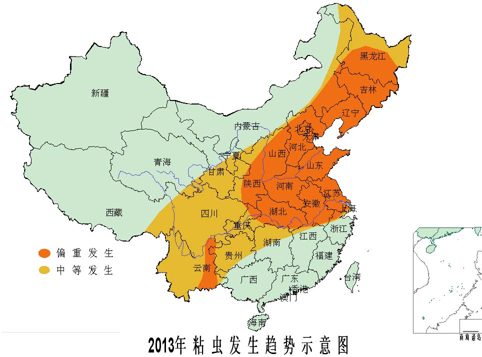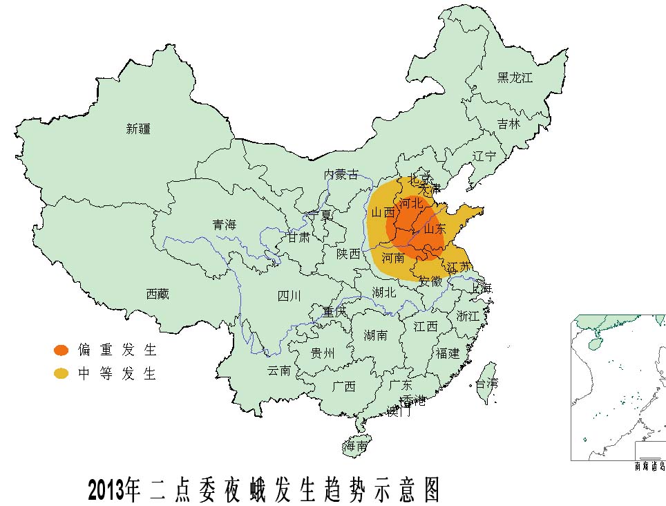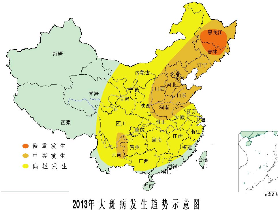 據全國(guo)農業技(ji)術推廣服務中心(xin)會同科研、教(jiao)學(xue)和(he)推廣單位專家分析(xi)預測(ce),2013年(nian)全國(guo)玉(yu)米(mi)病蟲害(hai)(hai)總體偏(pian)重(zhong)發(fa)(fa)(fa)生(sheng)(sheng)(sheng)(sheng)(sheng)(sheng),明顯重(zhong)于常(chang)年(nian),預計發(fa)(fa)(fa)生(sheng)(sheng)(sheng)(sheng)(sheng)(sheng)面積11.3億(yi)畝次,蟲害(hai)(hai)發(fa)(fa)(fa)生(sheng)(sheng)(sheng)(sheng)(sheng)(sheng)8.3億(yi)畝次,病害(hai)(hai)發(fa)(fa)(fa)生(sheng)(sheng)(sheng)(sheng)(sheng)(sheng)3.0億(yi)畝次;將(jiang)影響(xiang)全國(guo)約3億(yi)畝玉(yu)米(mi)的安全生(sheng)(sheng)(sheng)(sheng)(sheng)(sheng)長。其中,玉(yu)米(mi)螟(ming)、大斑病在東北(bei)、華(hua)北(bei)偏(pian)重(zhong)發(fa)(fa)(fa)生(sheng)(sheng)(sheng)(sheng)(sheng)(sheng),局部大發(fa)(fa)(fa)生(sheng)(sheng)(sheng)(sheng)(sheng)(sheng);二、三(san)代粘蟲在東北(bei)、華(hua)北(bei)和(he)黃淮等(deng)地中等(deng)以上(shang)發(fa)(fa)(fa)生(sheng)(sheng)(sheng)(sheng)(sheng)(sheng)的可能性較大;二點委(wei)夜蛾在黃淮海中等(deng)發(fa)(fa)(fa)生(sheng)(sheng)(sheng)(sheng)(sheng)(sheng),局部偏(pian)重(zhong)發(fa)(fa)(fa)生(sheng)(sheng)(sheng)(sheng)(sheng)(sheng)。