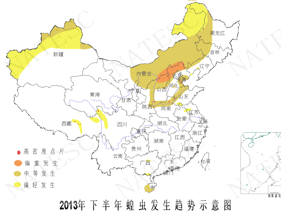 7月11-12日,全國農技中心在黑龍(long)江省哈爾濱(bin)市召開了(le)下半年(nian)蝗蟲(chong)(chong)發(fa)(fa)生(sheng)(sheng)(sheng)趨(qu)勢(shi)會(hui)商會(hui),來自16個蝗蟲(chong)(chong)發(fa)(fa)生(sheng)(sheng)(sheng)省(區、市)的測報技術人(ren)員參加了(le)會(hui)議。會(hui)議總結了(le)2013年(nian)夏(xia)季(ji)蝗蟲(chong)(chong)的發(fa)(fa)生(sheng)(sheng)(sheng)情況和特點,在分析夏(xia)殘(can)蝗蟲(chong)(chong)源基(ji)數、蝗區生(sheng)(sheng)(sheng)態(tai)環境和氣(qi)象條(tiao)件等(deng)因素的基(ji)礎(chu)上,對今年(nian)秋(qiu)季(ji)蝗蟲(chong)(chong)發(fa)(fa)生(sheng)(sheng)(sheng)趨(qu)勢(shi)做出了(le)預報。